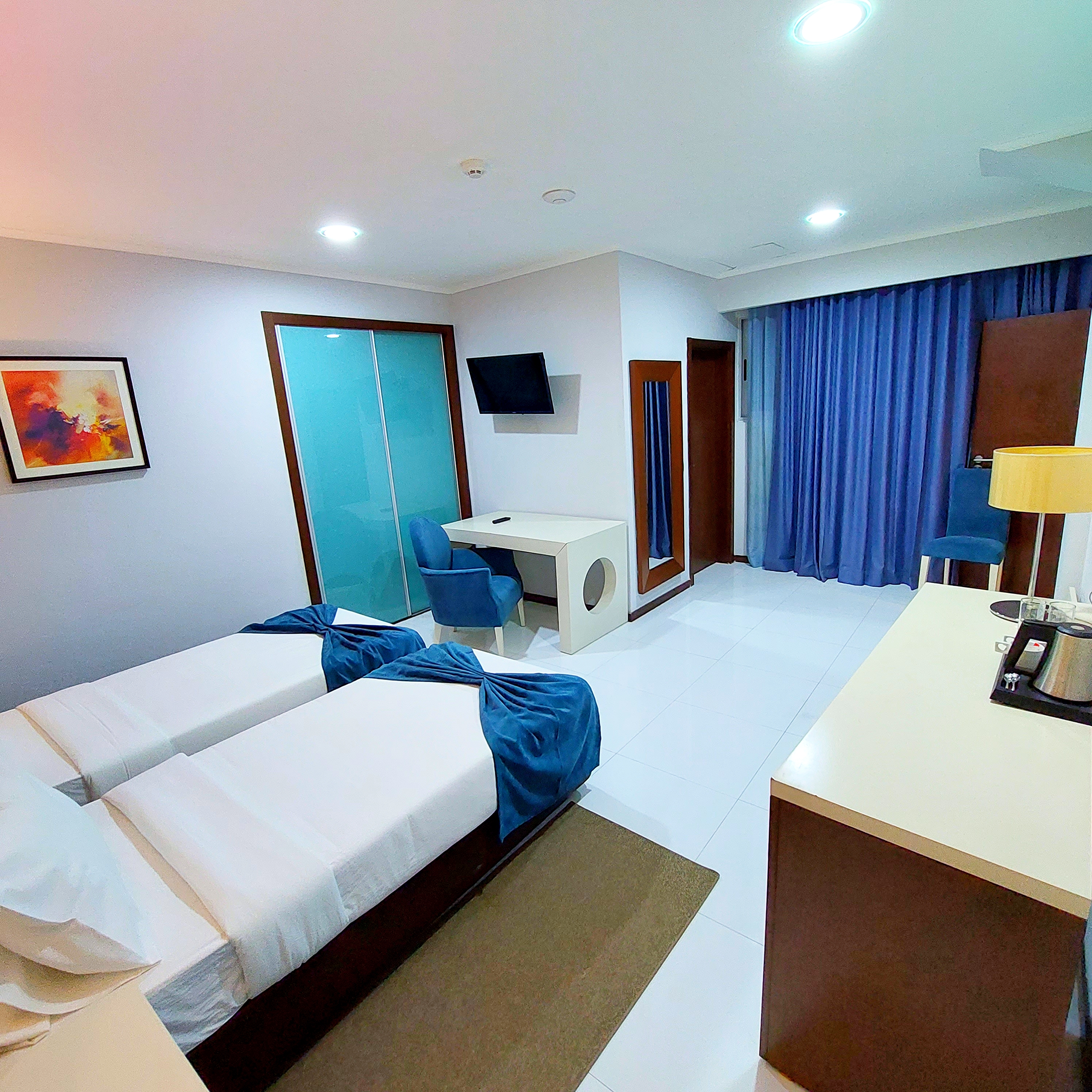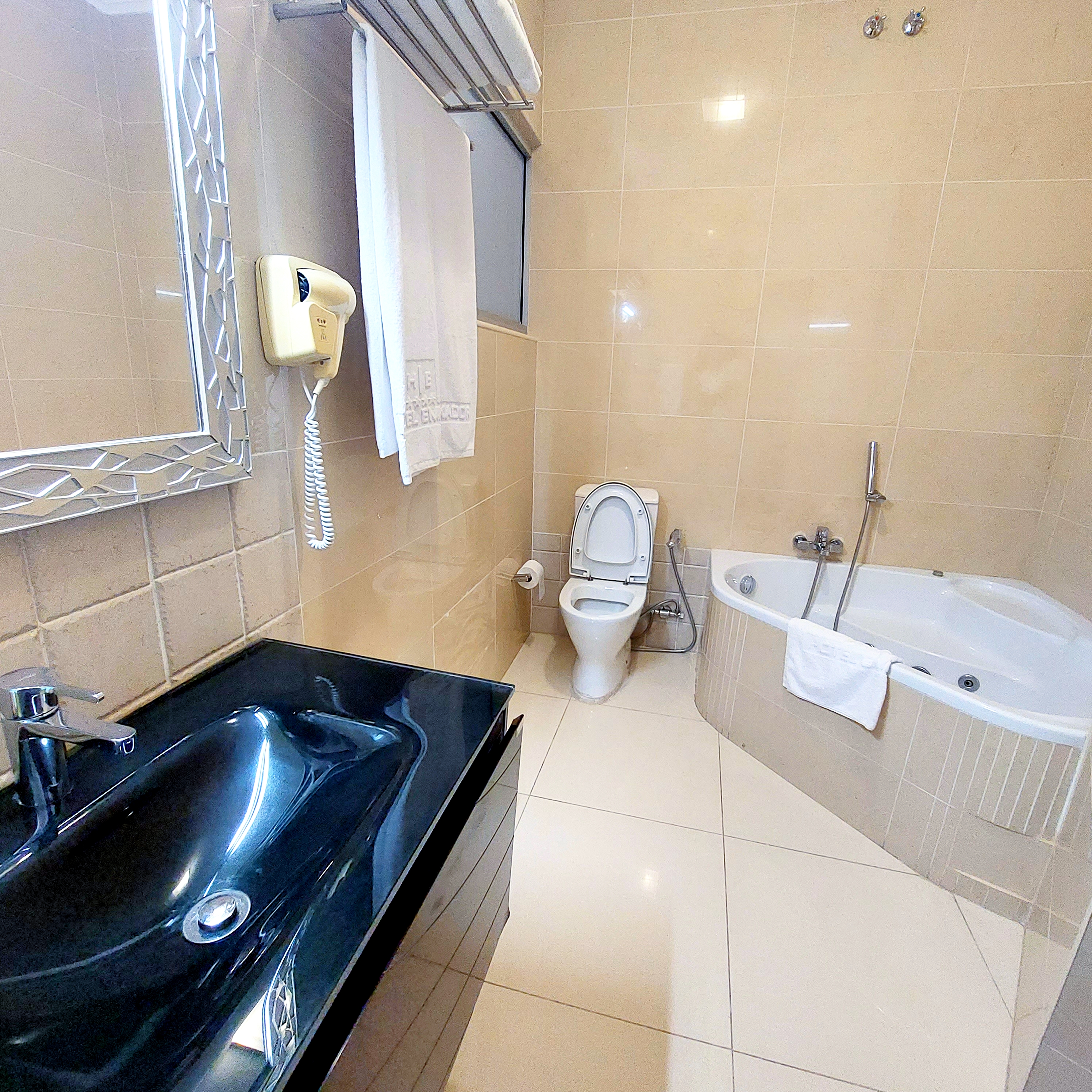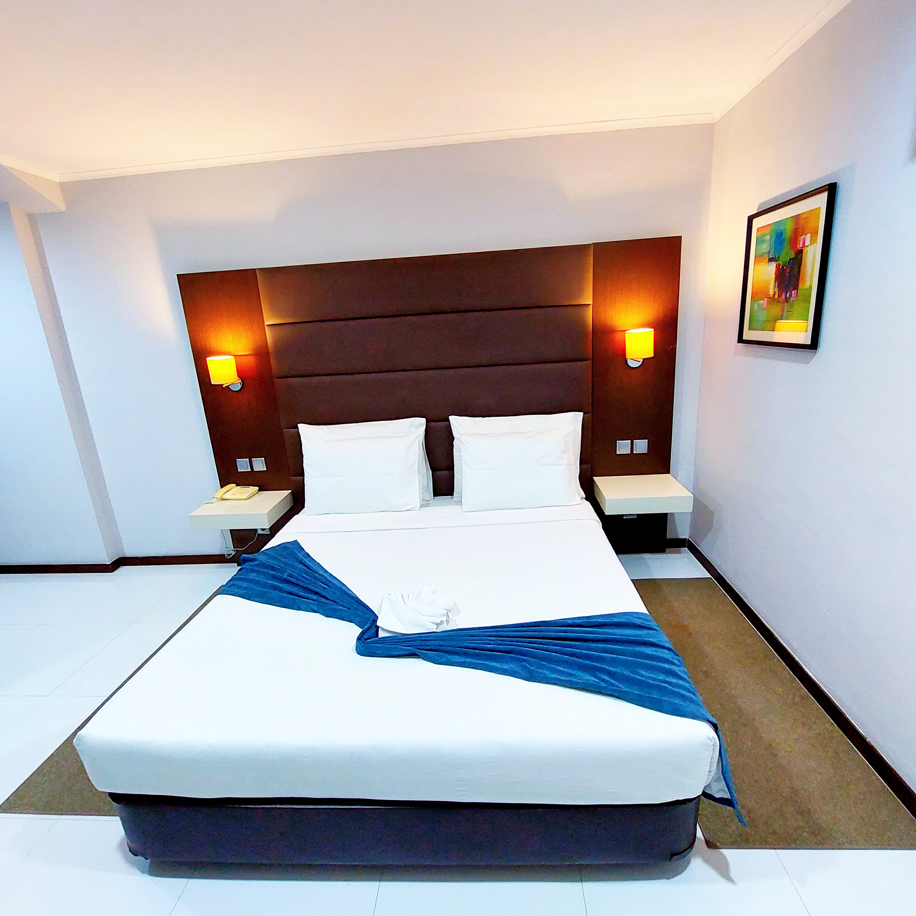 Suite decorated with charm and elegance! Offers a distinct vacation with complete comfort. The king size bed, large living room and double bedroom are some of the particular amenities that make this suite even more special. Includes: 1.Breakfast 2.Air conditioned environment 3.Gym 4.Electronic safes 5.Parking 6.TV 7.Free WiFi 8.Fridge bar_cafe 9.Bathrobes 10.Slippers 11.Hairdryer 12.Private Balcony 13.Phone