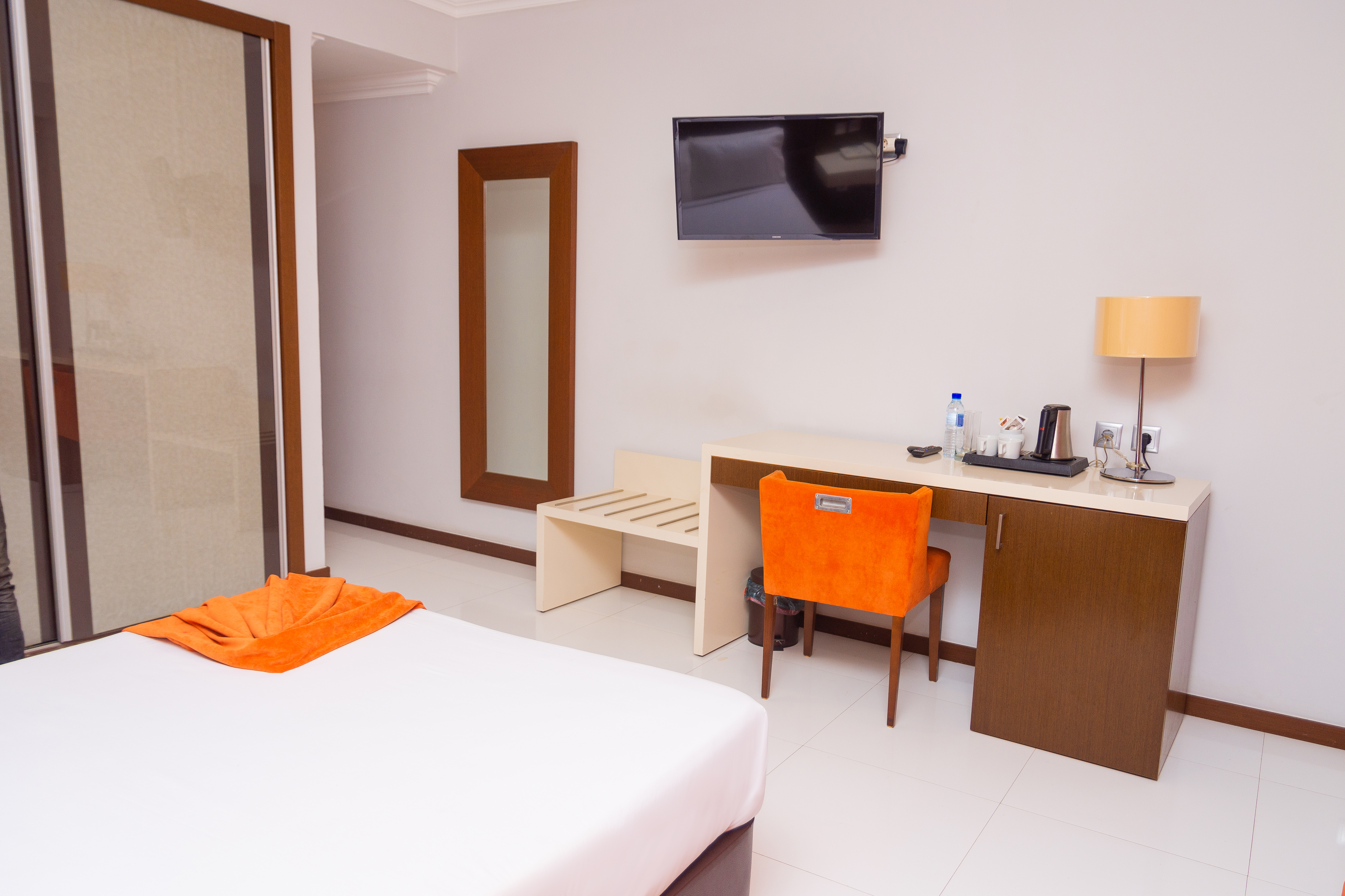 The Queen size bed and room service are the particular amenities that make this suite even more special. Includes: 1.Breakfast 2.Air conditioned environment 3.Gym 4.Electronic safes 5.Parking 6.IPTV, DSTV 7.Free WiFi 8.Fridge barcafe 9.Hairdryer 10.Private Balcony 11.Phone