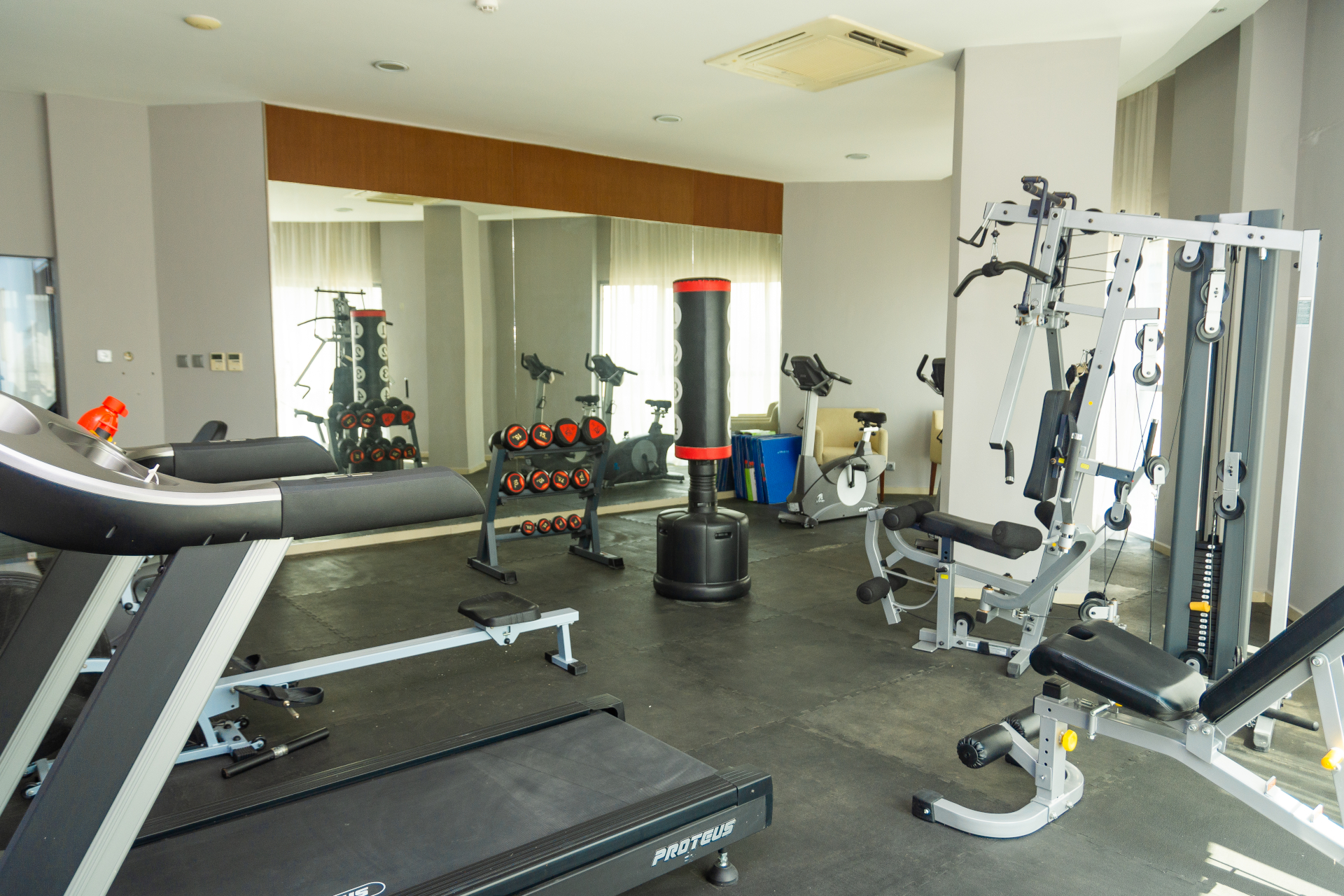 Our outstanding gymnasium is on the fifth floor of the East Wing and features a state-of-the-art range of Techno Gym equipment.