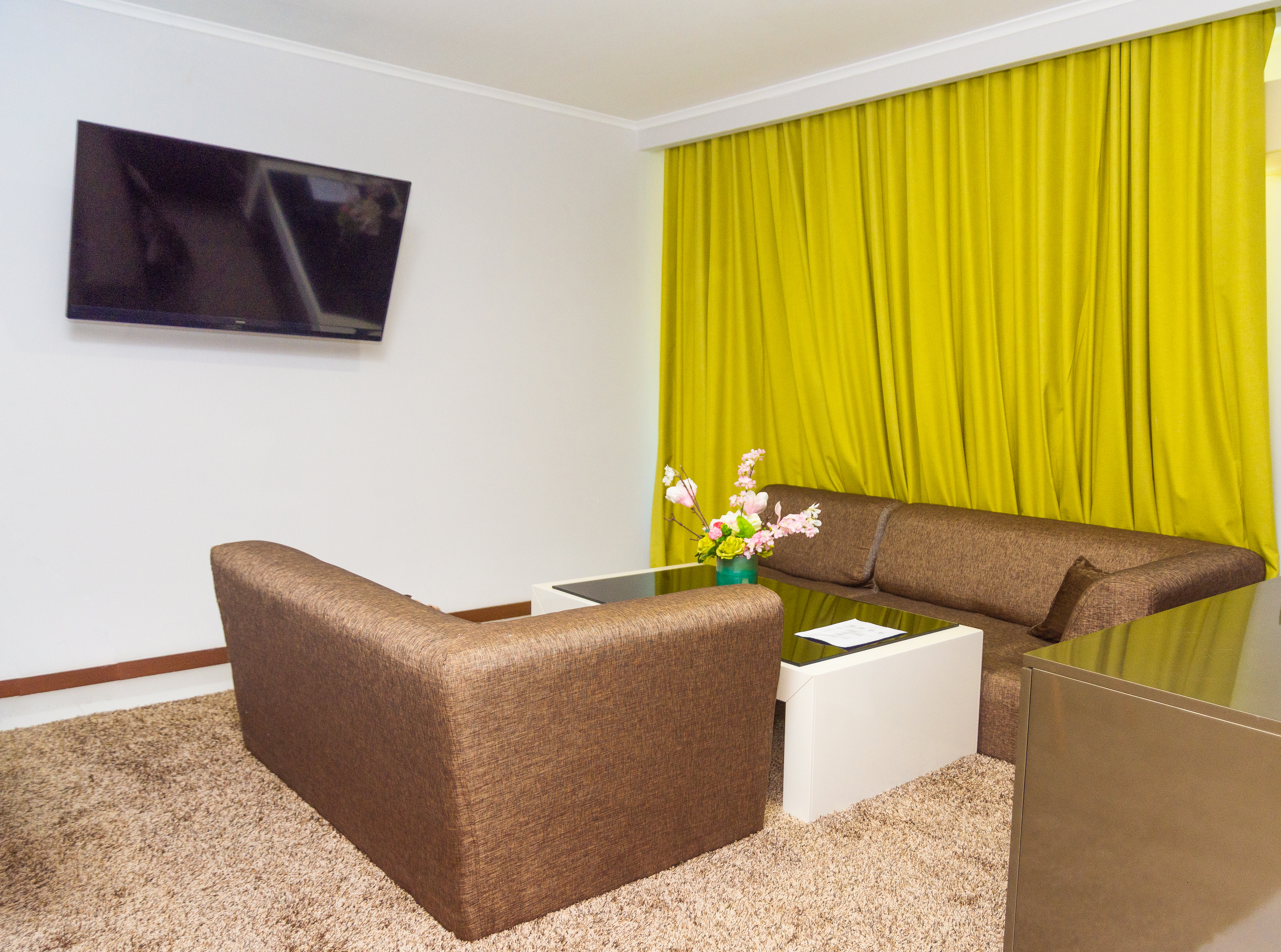 Suite decorated with charm and elegance! We offer a distinct vacation with complete comfort. The king size bed, large living room, double closet and Jaccuzi are some of the particular amenities that make this suite one of the best. Includes: 1.Breakfast 2.Air conditioned environment 3.Gym 4.Electronic safes 5.Parking 6.IPTV, DSTV 7.Free WiFi 8.Fridge barcafe 9.Hairdryer 10.Private Balcony 11.Phone 12.Jaccuzi 13.Closet 14.Bathrobes 15.Slippers