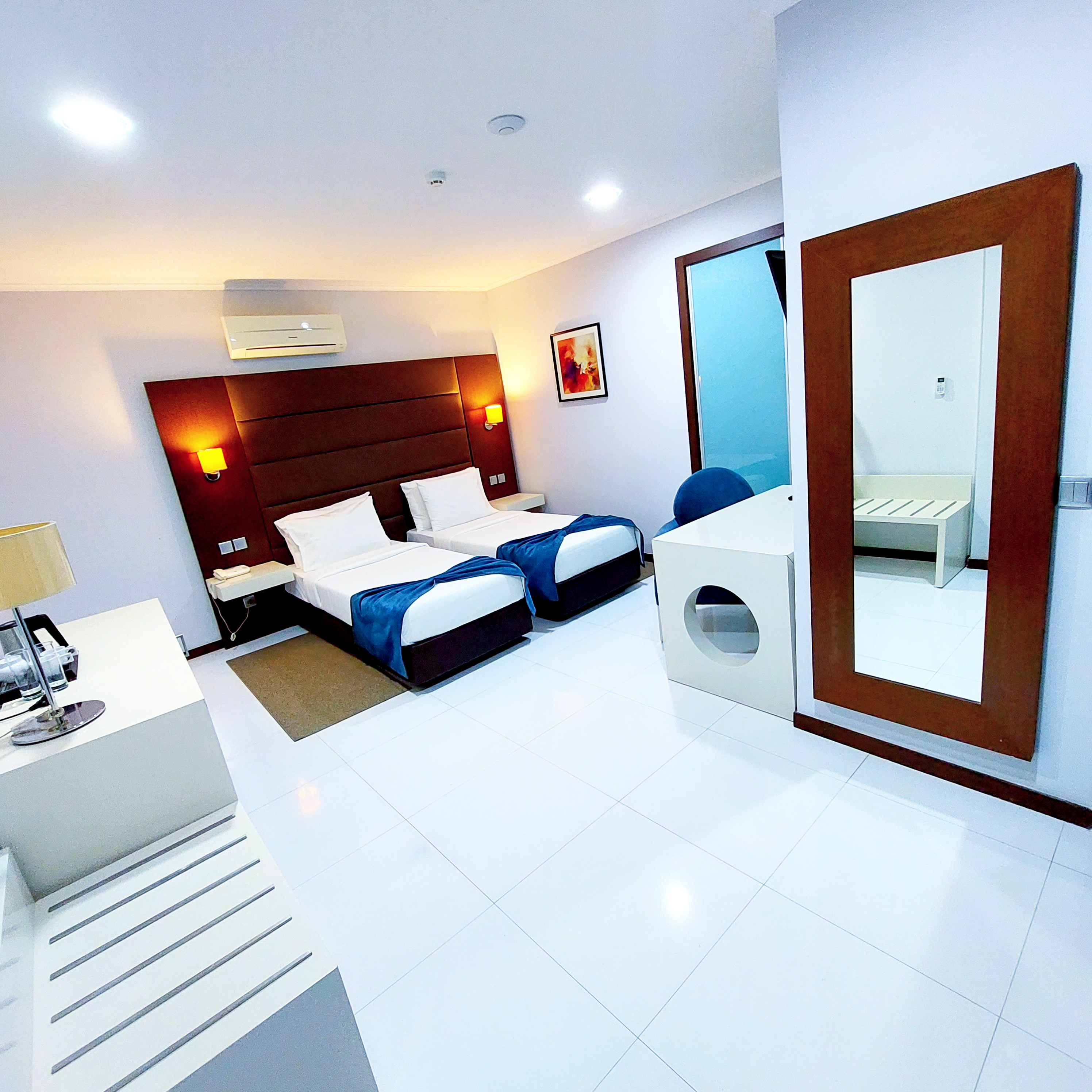 Suite decorated with charm and elegance! Offers a distinct vacation with complete comfort. The king size bed, large living room and double bedroom are some of the particular amenities that make this suite even more special. Includes: 1.Breakfast 2.Air conditioned environment 3.Gym 4.Electronic safes 5.Parking 6.TV 7.Free WiFi 8.Fridge bar_cafe 9.Bathrobes 10.Slippers 11.Hairdryer 12.Private Balcony 13.Phone